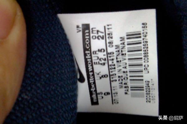 4、鞋标鉴别的第三部分为尺码栏:耐克公司为了避免鞋标被仿,自07年第三季度开始NIKE公司对不同OEM工厂制造的鞋子采用了对位方式不同的鞋标。