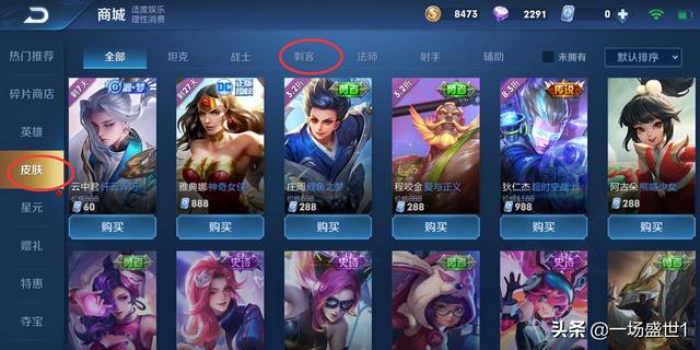 2、左边列表选择皮肤>刺客