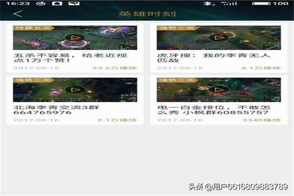3再点击“英雄时刻”进入下一界面,这里有各种英雄的英雄时刻,全是人气观看量比较高的,然而没有分类,如果你想看单子某个英雄的视频,很难找到,
