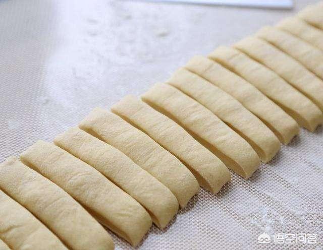 后来我才想起来,是因为我拍面的时候手上有油,所以切出来的面条不能黏在一起,我做第二锅的时候注意了一下,拍面条、切面条的时候手上都没有油, 炸出来的油条就不会一分为二了。