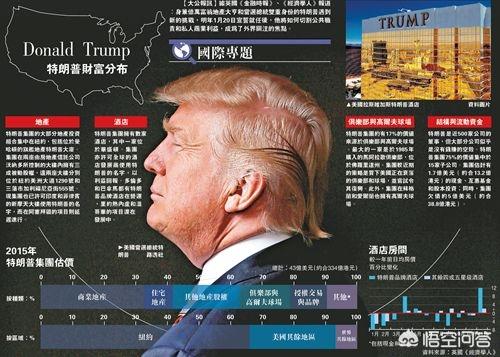 唐纳德·特朗普现在是美国第45任总统,没有当总统前他是商业大亨、文化达人、影视名人。特朗普是特朗普集团董事长及总裁,也是特朗普娱乐公司的创始人,在全世界经营房地产、赌场和饭店。特朗普集团下属企业有五百多个,涉及房地产开发,投资,经纪,销售和营销,以及物业管理;特朗普集团总部位于美国密歇根州利沃尼亚,员工人数多达六万六千人。2012财年,特朗普集团收入为164亿美元,营业收入为10.9亿美元,净收入为10.1亿美元,总资产为109亿美元,权益总额为37.0亿美元。