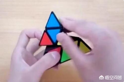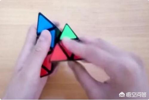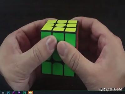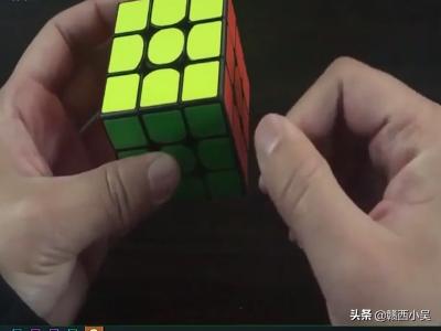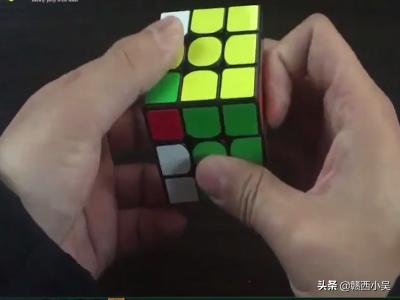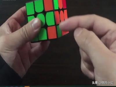 3、以黄绿边块为例、待返回的黄绿色边缘块的黄色侧与已知黄色侧底部的黄色侧块对齐,向上转动左角块、向左转动上角块、然后向下转动左角块。