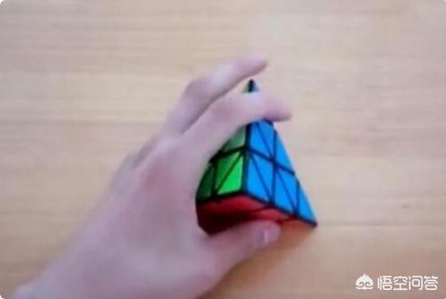 恢复黄底、将黄底放在底部、观察上角块边缘是否有黄边、此时、整个金字塔底部两个块的颜色决定了该层的颜色。