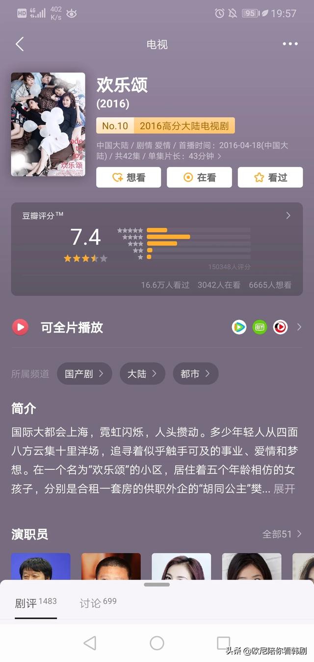 欢乐颂是由正午阳光影视公司出品的一部剧,都说正午阳光出品必是精品,让这部剧在质量上有了保障,同时这部剧的演员阵容也非常强大,刘涛、蒋欣、王子文、杨紫、乔欣、祖峰、王凯、靳东等人各个都是实力派,让这部剧演技上有了保障,而且这部剧的豆瓣评分也挺高,是2016年的高分大陆电视剧。
